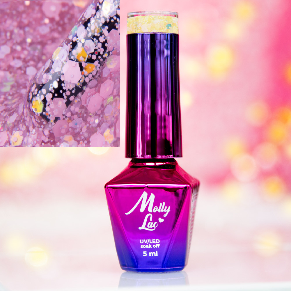 Top UV special cu particule de paiete sclipitoare.